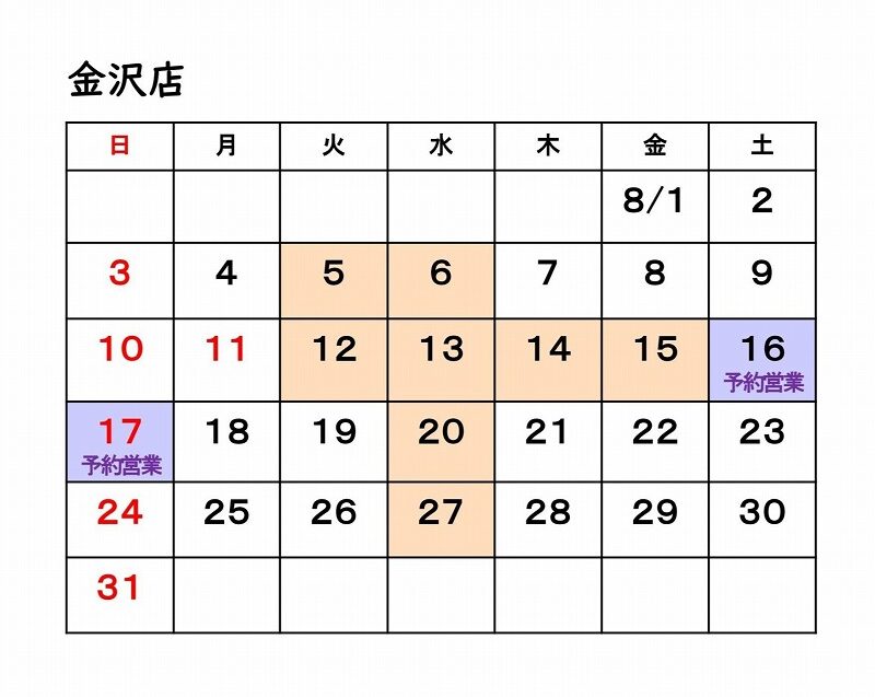 8月16日(土)・17日(日)  ご予約のみの営業 ※前日までにご予約ください